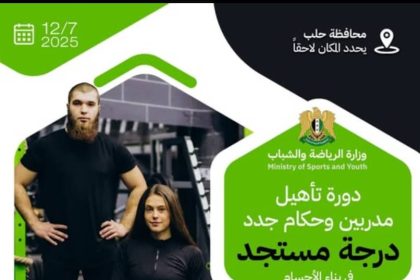 يقيم اتحاد بناء الأجسام دورة تأهيل مدربين وحكام (درجة مستجد) في حلب،…