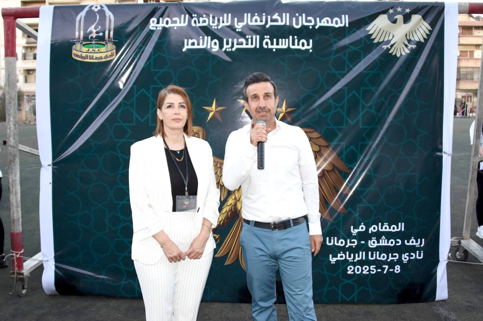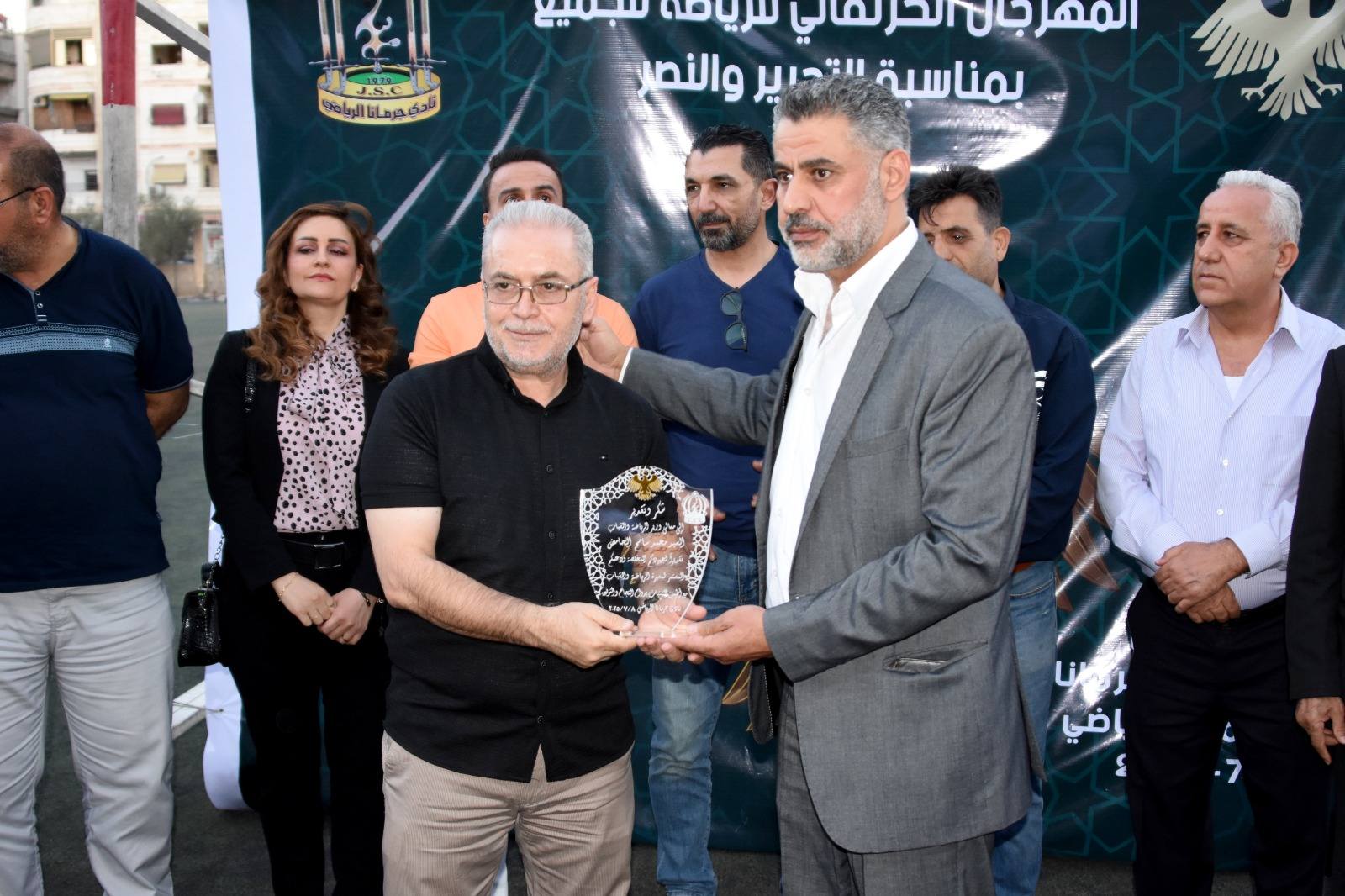 أقيم الحفل بحضور السيد إسماعيل المصطفى رئيس مكتب التنظيم المركز ي والسيد فراس تيت رئيس مكتب الألعاب الجماعية المركزين والسيد ظافر عليان مدير رياضة ريف دمشق والسيد ربيع قاق رئيس نادي جرمانا وعدد من أعضاء الإدارة.