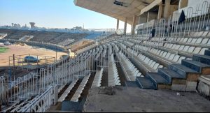 بعد المتابعة المتواصلة والحثيثة من قبل مديرية الرياضة والشباب بدرعا لمشروع الملعب من أجل استكماله ليكون جاهز مع بداية الموسم القادم حتى لا تتكرر المشكلة مرة أخرى ويلعب الشعلة خارج أرضه، وبعد أن حمدنا الله على بقاء الشعلة بالدوري الممتاز، تم الوصول إلى قرار يقضي بسحب الأعمال من الشركة المنفذة للمشروع (شركة البناء والتعمير) لعدم التزامها بتنفيذ المشروع حتى نهايته وطلبت وزارة الرياضة والشباب من مديرية الرياضة بدرعا إعداد دراسة للأعمال المتبقية من مشروع ملعب البانوراما والمتضمنة المرافق الخدمية والمشالح والمدرجات والمنصة وغير ذلك من اجل استكمالها ووصلت الدراسة المقدمة لهذه الاعمال مبلغ مليار وسبع مائة مليون ليرة سورية علماً بأن تكلفة الملعب للعشب الصناعي بلغت 16 مليار ليرة سورية! حيث تم التنفيذ مركزياً عن طريق شركة البناء والتعمير.