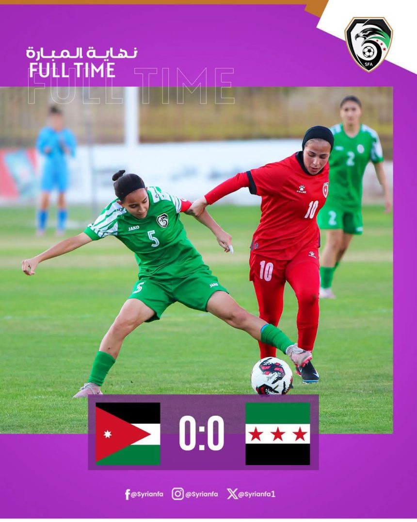 تعادل منتخبنا الوطني للشابات لكرة القدم مع نظيره الاردني سلباً في المباراة الودية الإستعدادية التي جمعت المنتخبين بملعب مدينة الأمير حسين الرياضية في السلط ضمن معسكره التدريبي الخارجي المقام حالياً في المملكة الأردنية الهاشمية إستعدادا للتصفيات الآسيوية المقررة الشهر القادم في الصين، .