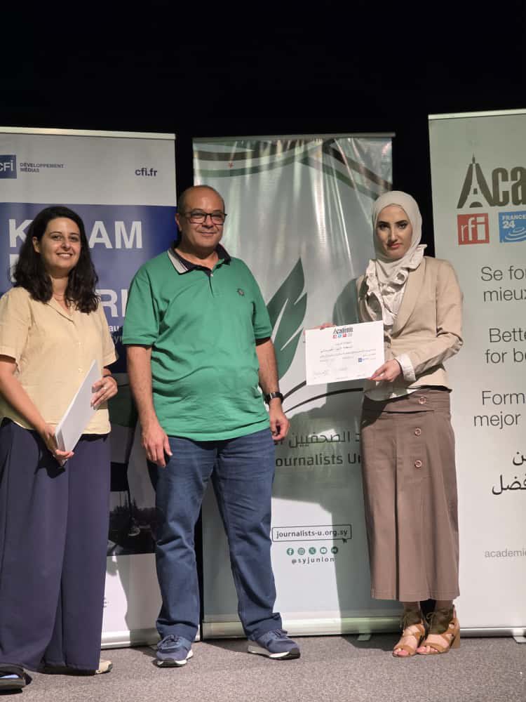 أخبار الاتحادالصور صور من ختام تدريب وسائل التواصل الاجتماعي (المحتوى والظهور)، الذي نظمه اتحاد الصحفيين السوريين آخر تحديث: 2025-10-22 3:42 م نشر في: 2025-09-27 شارك شارك صور من ختام تدريب وسائل التواصل الاجتماعي (المحتوى والظهور)، الذي نظمه اتحاد الصحفيين السوريين بالتعاون مع أكاديمية فرانس ميديا موند. شارك: Facebook Whatsapp Whatsapp Telegram انسخ الرابط Print شارك المقال السابق شارك المكتب التنفيذي لاتحاد الصحفيين السوريين في فعاليات ملتقى مستقبل الإعلام والاتصال في نسخته الثالثة المقال القادم اتحاد الصحفيين السوريين بالتعاون مع أكاديمية فرانس ميديا موند، يطلق تدريباً حول وسائل التواصل الاجتماعي: المحتوى والظهور، فعلى الراغبين بالتسجيل تعبئة الرابط المرفق. آخر الاخبار الصحافة السورية.. من الرقابة إلى الثورة وما بعدها، عنوان الجلسة الثانية من فعالية حوارات صحفية بذكرى الحرية التي نظمها اتحاد الصحفيين السوريين في دمشق أخبار الاتحاد من الشاهد إلى المراسل.. أخبار الاتحاد عقد فرع اتحاد الصحفيين السوريين في إدلب اجتماعه الأول بحضور أعضائه ورئيس الاتحاد أخبار الاتحاد ام فرع اتحاد الصحفيين السوريين في حلب يوماً تفاعليّاً مع أعضاء الاتحاد في المحافظة أخبار الاتحاد التواصل الاجتماعي248.1kLike69.1kFollow134kPin54.3kFollow